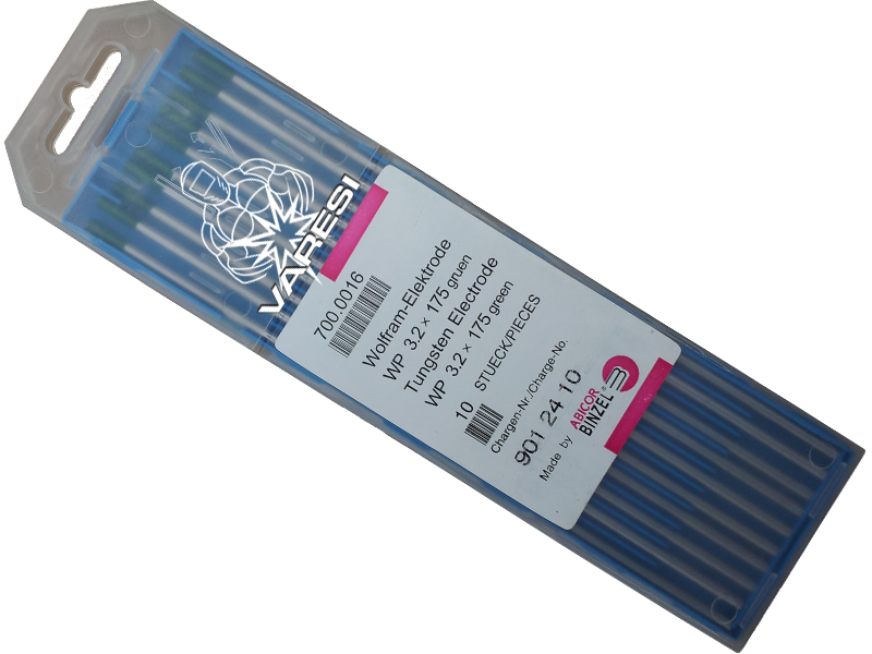 Zelene volframove elektrode (AWS klasifikacija EWP) z najvišjo vsebnostjo volframa, kar 99.50 odstotkov, imajo najvišjo stopnjo porabe med vsemi elektrodami.