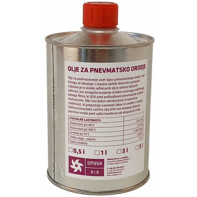 Vrsta Pnevmatsko orodje olje Količina 0,5 l Viskoznost VIS 32... 7,80 € 7,41 € z DDV