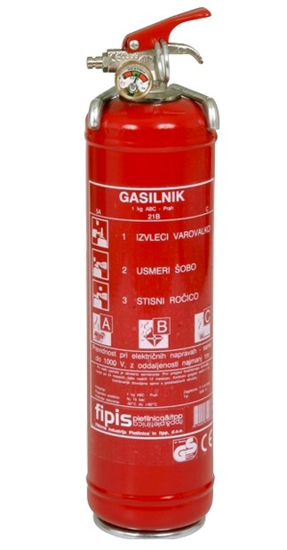 Vsebuje prah ABC (za gašenje gorljivih trdnih snovi, vnetljivih tekočin in gorljivih plinov).